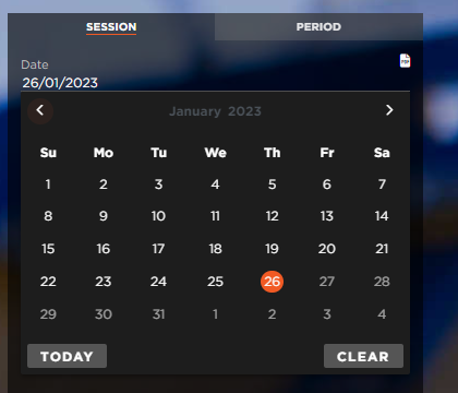 التواريخ: سيؤدي النقر فوق التواريخ إلى فتح تقويم يمكنك من خلاله تحديد الفترة التي تريد تحليلها.