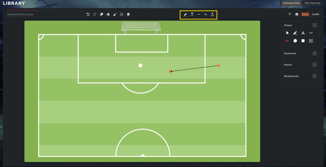 Asset Customization: Once the background is established, you can begin layering objects. The Shapes section allows you to draw manual lines, straight paths, or curved trajectories to represent player movement or ball flight