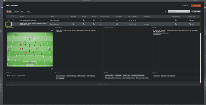 Previewing: Before finalizing an import, the Preview Icon allows you to review the full details of a drill to ensure it meets the session's objectives.