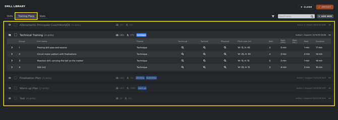 Training Plans allow you to group multiple drills into a single template, streamlining the preparation for future sessions.