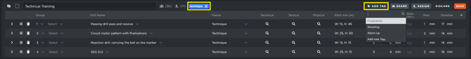 Categorization with Tags: To maintain an organized database, you can assign tags to your plans. These tags act as filters, allowing you to categorize plans by intensity, tactical focus, or phase of the season.