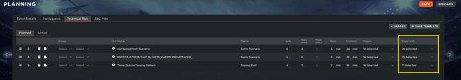 1.26 share specific drills with players or staff via the "share with" column