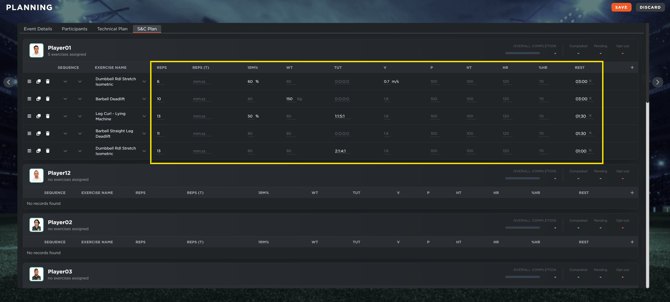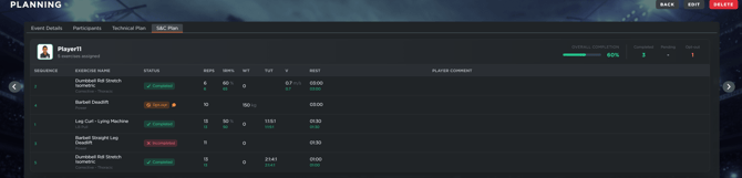 Real-Time Player Feedback: In S&C sessions, players can use their mobile app to track progress as it happens. They can mark exercises as complete, adjust repetitions based on their performance, and leave notes for the coaching staff.