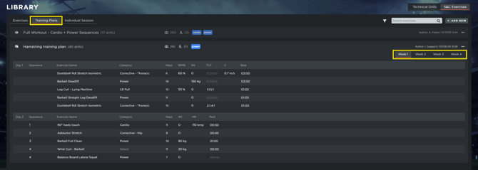- Training plan: You can build a complete training plan and program it across various sessions within a single week or across multiple weeks.