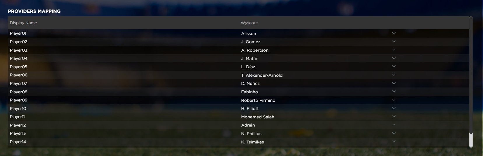 Para emparejar un jugador a su respectivo perfil desde tu proveedor de API, independientemente de cuál sea, simplemente tendrás que añadir el nombre del jugador (o seleccionarlo de la lista desplegable). El proceso es exactamente el mismo que se muestra en el vídeo introductorio al principio del artículo.